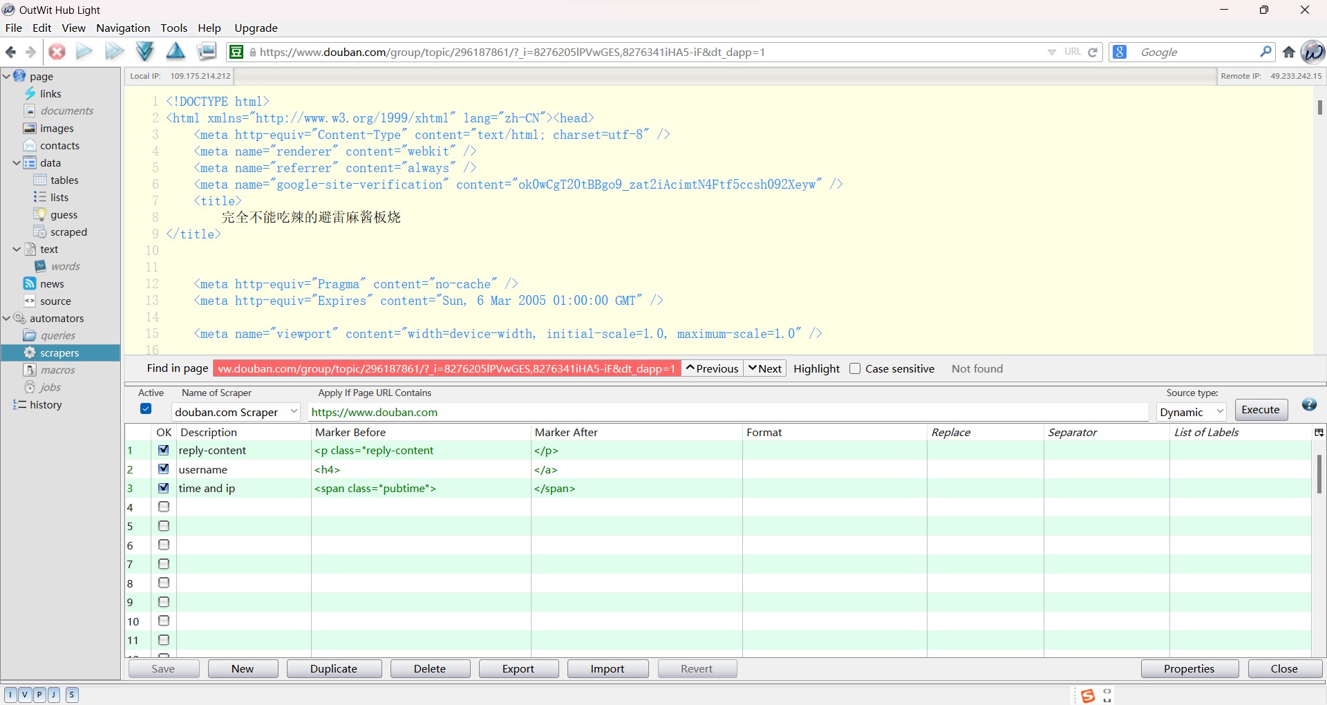 We learnt about how to extract some data from a webpage during the workshop.As a practice, I tried to do some web scraping to the Douban with outwit.